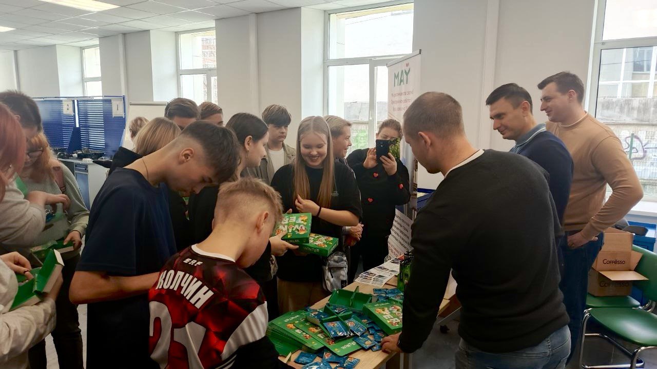 На встрече собрались ученики 9-х классов из школ города Щелково и Щелковского района. Возможно, часть из них – наши будущие сотрудники, поэтому для нас крайне важно, чтобы такое значительное число людей узнало о нашей фабрике. Начальник цеха кофе рассказал подробнее о Майкомплексе и возможностях карьерного развития. А чтобы погрузить учеников в атмосферу производства, гостям представили подарочную коллекцию и показали процесс ее создания.