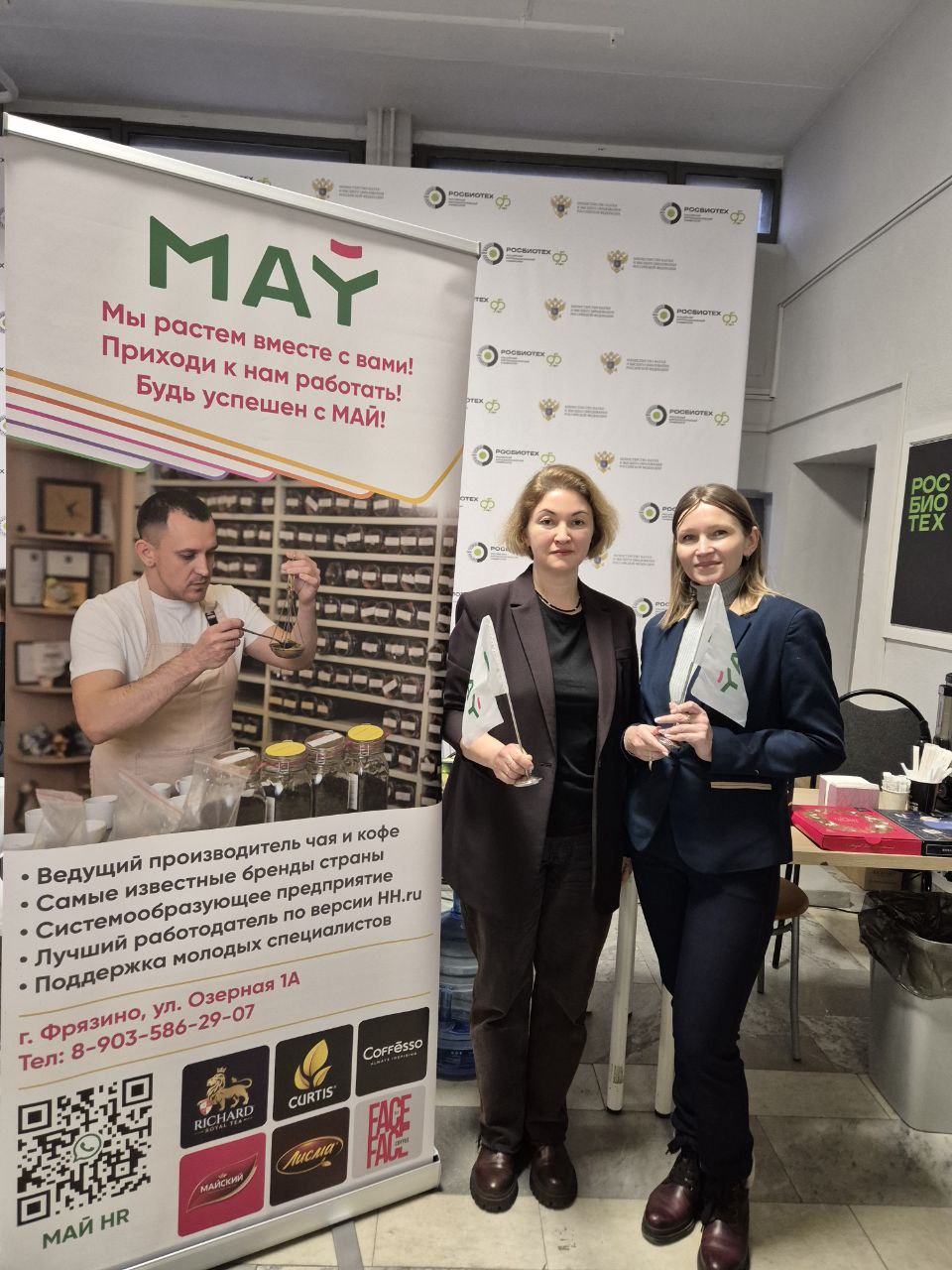 С Росбиотехом компанию МАЙ связывают продуктивные партнерские отношения. Значительная часть команды получила образование в этом учебном заведении. Компания поддерживает тесный контакт с преподавателями и специалистами университета, консультируясь с ними при разработке новой продукции и по другим вопросам. Кроме того, Компания активно развивает программы по привлечению выпускников, предлагая им интересную работу и привлекательные условия труда.