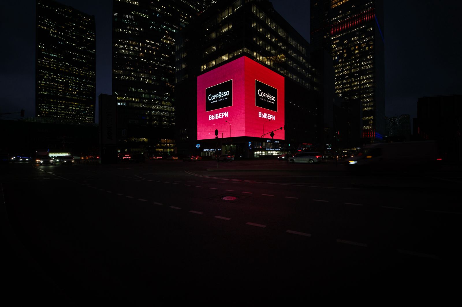 В центре делового квартала Москва-сити размещена яркая имиджевая реклама COFFESSO ассорти дрипов Young and Beautiful. Ролик рассказывает об уникальных вкусах кофе в линейке бренда: манго-морошка, фисташка-малина, апельсин-шоколад, ром-ваниль и карамель. Динамичные цветные видео заряжают положительными эмоциями и делают наши будни ярче, вкуснее.